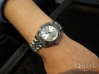 ベーシックで飽きのこないシンプルなバータイプ。品の良いシルバーダイヤルがお気に入り。 ロレックスを前々から購入しようと思っていましたが、店長の松岡さんの対応が良くクォークで購入しました。