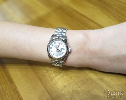 I様、この度はクォーク神戸店をご利用頂きまして誠に有難うございました。ご購入頂きましたモデルは、光沢のあるシルバーの文字盤に10ポイントのダイヤを配置し、ベゼルにはホワイトゴールドを使用しております。全体的にお色目が統一されており、派手すぎず、控えめでいて上品さもあるので、長い間飽きることなくお使い頂けるモデルだと思います。I様にとても良くお似合いでしたので、自信を持ってオススメさせて頂きました。末永くご愛用頂けましたら幸いでございます。楽しいお時間を有難うございました。今後もご指名頂けるようしっかりご対応して参りますので、今後ともクォーク神戸店を宜しくお願い致します。また、ブレスレットの洗浄及び調整なども無料で行っておりますので、近くに来られた際は是非遊びにいらして下さい。心よりお待ちしております。 クォーク神戸店 井内