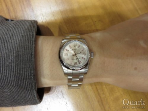 M様、この度はクォーク神戸店をご利用頂き誠にありがとうございます。お選び頂いたオイスターパーペチュアル26は、日付表示もなくシンプルで使いやすくてピンクのインデックスがアクセントになっているのがポイントです!3・6・9のアラビア数字が入っていますので、視認性も抜群です。M様の雰囲気にすごく良くお似合いでしたので、末永くご愛用頂ければ幸いです。アフターサービスとして、ブレスレットの洗浄も無料で行っておりますのでお気軽にお申し付け下さいませ。またのご来店心よりお待ちしております。クォーク神戸店 増田