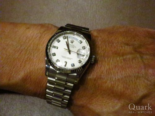 O様 日頃よりご愛顧を賜わり、お礼申し上げます。ケースからブレスレット、ダイヤルに至るまで全体がシルバー色で統一されたデイデイト Ref.118239A シルバー文字盤は、ハイクラスモデルでありながら落ち着いた印象を与えてくれる1本です。O様の日に焼けた腕にとてもよくお似合いでした。カッコイイです!!現在お持ちのお時計との着け替えを楽しみながら是非末永くご愛用頂ければ幸いです。今後のアフターメンテナンス等も、しっかりサポートさせて頂きますので、ご不明な点やサイズのお直し等が御座いましたら、お気軽にご連絡下さい。今後ともクォークを宜しくお願い致します。 クォーク梅田店 川田