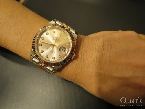 Y様 いつも弊社をご利用頂き誠にありがとうございます。今回お求め頂いたデイトジャストはエバーローズゴールドを使用しており、他のモデルとは一味違った高級感を堪能できますので末永くご愛用頂ければ幸いでございます。アフターメンテナンスもしっかりとサポートさせて頂きますので、何かご不明な点等がございましたら、お気軽にご相談下さいませ。 クォーク梅田店 羽場