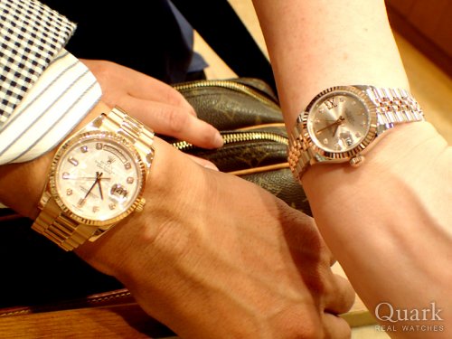 Y様 この度はクォーク仙台店をご利用くださいまして誠にありがとうございます。お求めくださいましたデイトジャストは、レディースモデルの中でも人気が高く、当店でもなかなか並ばない1本でございます。ご来店のタイミングで商品をご覧頂くことができましたのもご縁があってのことと存じます。ご主人様、奥様の18KPGのロレックスがお二人の優しい雰囲気を包み込むかのような雰囲気を今でも覚えております。いつまでもご愛用頂けましたら幸いでございます。今後とも末長いお付き合いの程、よろしくお願い申し上げます。