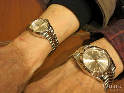 この度はクォーク梅田店にてロレックスをご購入いただきまして誠にありがとうございました。文字盤のサンダストローマはK様の雰囲気にとても似合っておりました。ピンクゴールドも馴染んでいて、K様にご購入いただけたことに運命を感じました。そして何より旦那様とお揃いのお色目をご用意出来た事を大変嬉しく思います。ご対応させていただいている中でお二人の仲睦まじい会話や笑顔を見ていて私も幸せな気分になりました。大切なロレックスを安心してご使用いただけますようサポートいたしますので何かございましたらお気軽にご相談くださいませ。クォーク梅田店 相馬