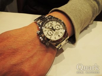 念願のデイトナを手に入れる事が出来ました。黒文字盤や、新型GMTのBLNRと悩んだ末、決めました。店の方も白ダイヤルを薦めて頂いた事も後押しになりました。