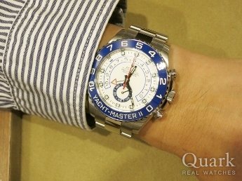 H様 日頃より私共クォークをご愛顧賜り、誠に有難う御座います。この度ご購入頂きましたヨットマスターII は、44ミリと大きなサイズですが、H様の印象と、青×白のカラーリングが相まって、とても爽やかで軽やかな感じでした。これからの季節には大活躍間違いなしのお色ですので、他のお時計同様、是非、ご愛用ください。また、H様の操作は完璧で、私の説明は全く必要ありませんでしたね。感服致しました。ヨットマスターII をご使用の際には、思う存分、操作と針の動きを楽しんでください。H様のウォッチケースに、今回のヨットマスターII が並んだところは圧巻の見応えかと思います。お写真を撮られましたら、是非、拝見させてください。楽しみにしております。次回、オススメの商品が御座いましたら、ご連絡させて頂きます。今後とも、どうぞ、宜しくお願い致します。 クォーク仙台店 麻生