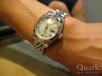 いつもクォーク福岡パルコ店をご利用頂き誠に有難う御座います。 ご購入頂きましたデイトジャスト・ホワイトシェルダイヤルのお色目・コンディションをH様に気に入って頂き、私も嬉しい限りで御座います。 シェルダイヤルは1点1点模様が異なることや、光の当たり方によってダイヤルの色目が違って見えることが魅力的な逸品で御座います。 是非、様々なシーンでご使用下さいませ。 今後共、末永いお付き合いを宜しくお願い致します。 クォーク福岡パルコ店 店長 松岡