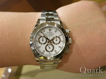 H様 いつもクォーク仙台店をご利用くださいまして、誠にありがとうございます。遂にデイトナでございますね! キングらしい貫禄あるフェイス、高級感のあるホワイトダイヤルは格好良いの一言に尽きますね。このお時計もまた、末長くご愛用頂けることと思っております。メンテナンスはしっかり対応させて頂きますので、ご安心頂けましたら幸いでございます。ブレス洗浄を無料で承っておりますので、その際はお気軽にお申し付けくださいませ。どうぞ宜しくお願い致します。 クォーク仙台店 古賀