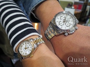 I様 この度は誠に有難うございました。ホワイトダイヤルとローマ数字の組み合わせは相性も良く、高級感に加え、上品な印象があります。様々なシーンでお使い頂けると思います。プレゼントでのご購入で羨ましい限りでした。お連れ様も弊社をご利用頂いておりますし、又一緒にいつでもお立ち寄り下さいませ。有難うございました。クォーク梅田店 店長 宮崎