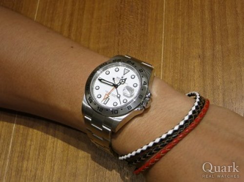 K様、いつもクォークをご利用頂き誠に有難うございます。お探しだったお子様の生まれ年と同年代製の一本が見つかり本当に良かったです!ロレックスの中でも独特なデザインのエクスプローラーIIをご堪能くださいませ。ブレスの調整・洗浄も無料で行っておりますのでお気軽にご依頼ください!メンテナンスも勿論承っておりますので些細なことでもご相談くださいませ。今後ともクォーク心斎橋店を宜しくお願い致します。