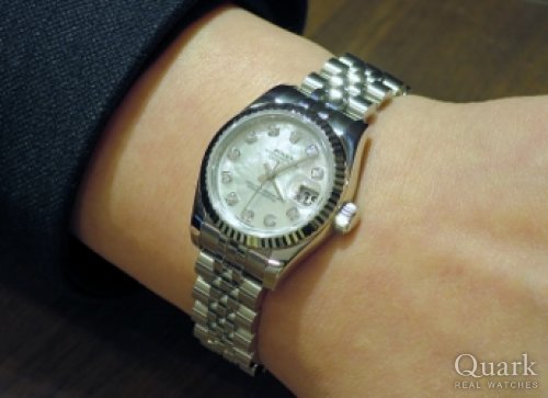 シェル文字盤で10Pダイヤの現行モデル中古品を探していたのですがなかなか無く、クォークさんに立ち寄った所たまたまあり購入を決めました。