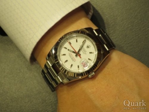 H様 この度はクォーク梅田店をご利用頂きまして、誠にありがとうございます。お選び頂きましたターノグラフの白文字盤は上品な白に赤色の秒針とカレンダー表記が印象的な1本となっております。プライベートにもお仕事にもお使い頂けるモデルでございます。他にお持ちの時計が黒文字盤ということもあり、活躍の機会も多いと思いますし、H様の雰囲気にも大変似合っておりましたので、是非、長くご愛用下さい。ご愛用の中で何かご不明点などございましたらお気軽にご連絡下さい。今後ともご購入頂きました時計と併せて、クォーク梅田店もよろしくお願い申し上げます。