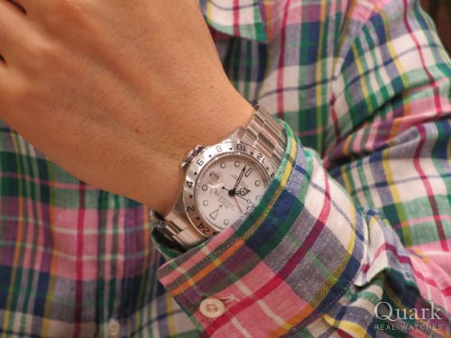 I様 この度もクォークをご利用頂き、誠に有難うございます。2本目の購入を頂いたI様。お仕事のお話、プライベートのお話等色々伺わせて頂き、楽しい時間を共有させて頂きました。前回ご購入頂いたエクスプローラーⅠと今回ご購入頂いたエクスプローラーⅡ。エクスプローラー2本は羨ましい限りです。文字盤も黒と白になりますので、サイズ感も含め、比較して楽しんで頂けたら幸いでございます。また、近くまでお越しの際はお気軽にお立ち寄り下さい。誠に有難うございました。