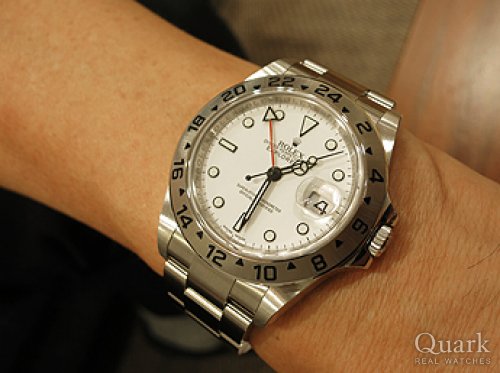 H様 いつもクォーク名古屋店をご贔屓頂き、誠にありがとう御座います。お選び頂いたEXPLORER II Ref.16570 白文字盤は、生産終了してから徐々に入荷が少なくなってきております。その中で今回タイミング良く、ご希望に添える年式の新しい個体をご案内する事が出来、大変嬉しく思っております。旧型モデルのシャープさは末永くご愛用頂けると思います。今後もお使い頂く中でご不明な点等が御座いましたら、お気軽に私までご相談下さいませ。またお時間がある際は、ブレス洗浄を兼ねて遊びにいらして下さい。今後とも末永いお付き合いの程、宜しくお願い致します。