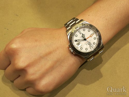 36ミリ径のエクスプローラーIを持っていましたが、今回はサイズUPによる存在感を腕元に求めてエクスプローラーIIを購入しました。また、スポーツモデルでは少ない白文字盤という点も気に入りました。