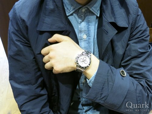 M様 この度はクォーク仙台店をご利用くださいまして誠にありがとうございます。デイトナRef.116500LN、やはり他と違うインパクトがございますね~。この魅力・・・たくさんのお時計を楽しんでこられたM様には言葉なんて必要ございませんね(笑)。コレクションの数は減ってしまいましたが、今まで以上の腕元からの存在感はもちろん、M様のお時計に対する満足度を上げてくれること間違いなしです!!そしていつかお子様におねだりされて・・・(笑)。その日の為にもいつまでもご愛用頂けますよう、今後もしっかり対応致しますので、ご不明点などございましたらお気軽にお申し付けくださいませ。また、嬉しいコメントまで頂きまして大変光栄でございます。私もM様とお話でき楽しい時間を過ごすことができました。特に、切なくも笑いありのM様のお時計の思い出話、もう忘れられません(笑)。店頭にてサイズ調整、ブレス洗浄を無料で承っておりますので、お近くにお越しの際はお店にも遊びにきてくださいね。それでは今後とも末永いお付き合いの程宜しくお願い申し上げます。