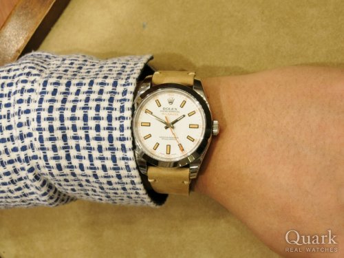 K様 この度はクォーク広島店をご利用頂きまして誠に有難うございます。今回お選び頂きましたミルガウス116400の白文字盤は白黒オレンジ色という爽やかな配色が非常に魅力的で、高い耐磁性に合わせて、デザイン性や実用性を兼ね備えたモデルとなります。流通量が少ない為、タイミングよくご案内出来て大変嬉しく思います。今後も全力でサポートさせて頂きますので、末永いお付き合いの程、宜しくお願い致します。クォーク広島店 劉