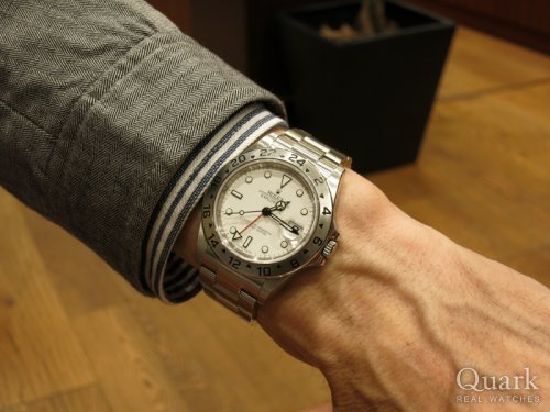 M様 前回に引き続きクォーク広島店をご利用頂きまして誠に有難うございました。安心安定の黒文字盤か冒険の白文字盤かで悩みに悩まれて当初購入予定であった白文字盤をお求め頂きましたが14270との使いまわしを考えれば最高の選択ではなかったでしょうか。ロレックススポーツモデルでは少数派の白文字盤ですが、そのらしくなさがさり気なく使えて重宝しそうな気がいたします。今回のご購入でロレックスの魅力の深みにさらにはまっていかれる事と思いますがしっかりとサポートさせて頂きますので、お時間があれば是非お立ち寄り下さいませ。今後ともクォーク広島店を宜しくお願い致します。 クォーク広島店 岩田
