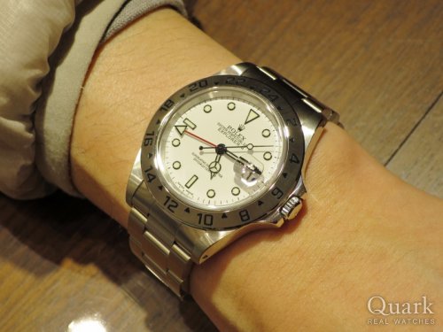 T様 いつもクォーク横浜店をご利用くださいまして誠にありがとうございます。Ref.16570は、旧型ならではの適度なボリューム感と赤い24時間針が現在でも高い評価を受けているモデルでございます。爽やかなホワイトダイヤルの雰囲気がT様にお似合いでしたので、日頃よりお使い頂けましたら幸いです。またいろいろとお時計のお話し等させて頂けたらと思いますので、近くへお越しの際はお気軽に遊びにいらしてください!今後とも末永いお付き合いの程、宜しくお願い致します。