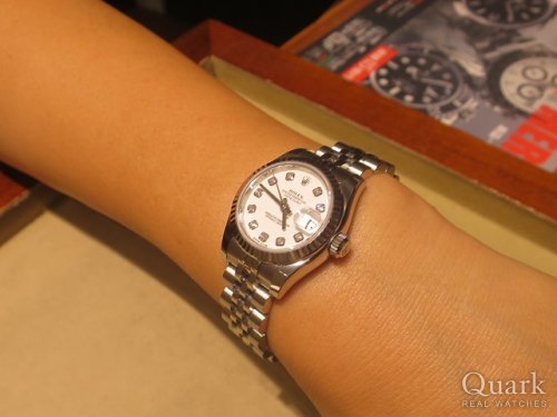 K様、この度は数ある時計店の中からクォーク銀座888店をご利用頂きまして誠に有難うございました。今回お選び頂いたRef.179174Gは艶のある白文字盤や10Pのダイヤなど、高級感がありながらも主張し過ぎず、大変上品なモデルです。K様の腕元にとても良くお似合いでした。末永くご愛用頂けますよう、今後もしっかりサポートさせて頂きますので、また気になるモデルやご不明な点などございましたら何なりとご遠慮なくご相談くださいませ。 クォーク銀座888店 坂口