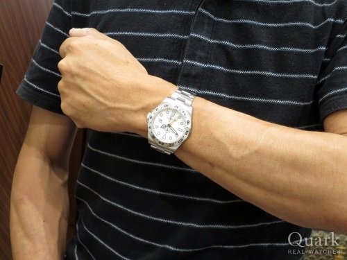 M様 この度はクォークなんば店にお越し頂き誠に有難うございます。またご購入まで2度もお足をお運び頂き、重ねてお礼を申し上げます。エクスプローラーIIのホワイトダイヤルは爽やかな印象ですので、オンオフ問わずご愛用頂けると思います。これからもM様に安心してお楽しみ頂けます様なんば店スタッフ一同、精一杯のご対応に努めて参りますので、どんな事でもお気軽にお声がけ下さいませ。今後とも末永いお付き合いの程お願い申し上げます。クォークなんば店 店長 杉崎