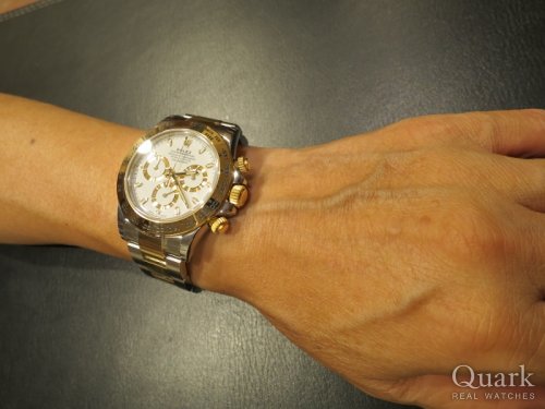 M様 先日は誠に有難う御座いました。また奥様と連日お越し頂きお手数をお掛け致しました。その後お求め頂きました時計の調子はいかがですか。やはり初志貫徹と言いますか、かなりステンレスと悩まれておりましたが、お好きなコンビをお求め頂いて良かったと思います。今回はホワイトダイヤルを選択されましたが、金との相性も良いですし、色々な場面でお使い頂けますと嬉しく思います。有難う御座いました。
