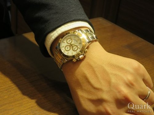 この度は、クォーク横浜店にてロレックスをご購入いただきまして誠にありがとうございました。KING OF ROLEXとも称されるデイトナですが、それを見事に着けこなしていただいており、品格のあるホワイト文字盤のデイトナはK様に大変よく似合っておりました。腕元と時計のバランスも見事でした。どうぞ、末永くご愛用くださいませ。お店の前を通りがかりの際にはお気軽にお立ち寄りください。いつでもブレスレットの洗浄サービスをさせていただきます。今後ともよろしくお願いいたします。 クォーク横浜店 長本