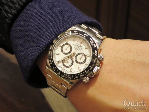 J様 この度はクォーク横浜店をご利用くださいまして誠にありがとうございます。J様が長い間お探しになられていたRef.116500LNのホワイトダイヤルは、2016年の発表以降大変な注目と人気を集めるロレックス随一のプレミアムモデルでございます。タイミング良くJ様に手にしていただき、私としても嬉しく存じます。横浜へお越しの際はブレスレット洗浄等でお気軽にご来店ください!その際には、ご使用いただいてのご感想等も伺えればと思います。アフターサポートもしっかりと対応させていただきますので、今後とも末永いお付き合いのほど、宜しくお願い致します。