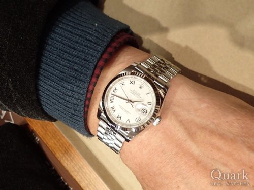 E様 この度はクォーク仙台店をご利用くださいまして誠にありがとうございます。ご案内までお時間をいただきまして大変失礼いたしました。DATEJUSTは文字盤の種類が多くて迷ってしまう方も多いです。そのなかでもホワイトローマは入荷が少ないダイヤルでございます。ご用意致しました商品にE様のお好みのお時計があるか心配しておりましたが、私の想像を超えたご決断のスピードに驚いてしまいました(笑)。ファーストロレックスというE様にとって記念すべきお買い物のお手伝いができ大変光栄でございます。これまで我慢されたお気持ちの分、たくさん自慢してください。E様のロレックスライフがいつまでも素敵な時間となりますよう、これからもお手伝いさせていただきますのでご愛用いただく上で気になる点などございましたらお気軽にお申し付けくださいませ。もちろん、ご子息のお時計のご相談もいつでもお待ちしております(笑)。店頭にてブレス洗浄、サイズ調整を無料で承っておりますので、仙台にお越しの際はまたお店にも遊びにきてください。仲良しなE様ご夫婦とお話しできる日を楽しみにしております♪それでは今後とも末永いお付き合いのほどよろしくお願い申し上げます。