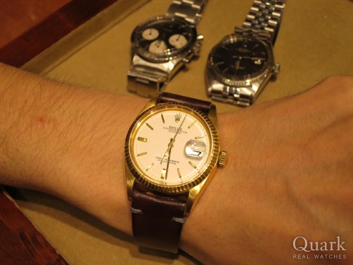 Y様 いつも弊社をご利用下さいまして、誠にありがとうございます。デイトジャスト1601/4とご一緒にご紹介させて頂いた金無垢モデル1601/8、大変珍しく美しいホワイトダイヤルでございました。また、Y様がおっしゃられる通り夜光無しのところもポイントですね。想定外でインパクトも大きかったかと思いますが、気に入って頂き大変嬉しく感じております。新たに加わったお時計と共に今後のロレックスライフが楽しみですね!本当に羨ましいです!次回もご期待にお応えできるよう努めて参ります。またお会いできる機会を楽しみにお待ち致しております。クォーク銀座888店 佐藤