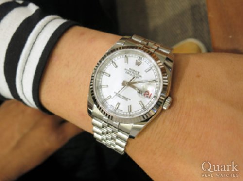 K様 この度はクォーク名古屋店をご利用頂き、誠にありがとう御座います。色々なお店を見られた中で、当社でご購入をご決断頂き、とても嬉しく思います。お選び頂いたデイトジャスト Ref.116234 ホワイト文字盤は、爽やかで綺麗な印象を与えてくれますね。またホワイトゴールドを使ったベゼルやジュビリーブレスレットで、ロレックスらしい高級感を堪能して頂けるモデルとなります。ご覧頂いた中で、K様のご希望に添える御時計が見つかり嬉しく思います。今後も末永くご愛用頂けますよう、私も精一杯サポートに努めますので、ご相談などが御座いましたら、ご遠慮なく私までご連絡下さいませ。栄にお越しの際は、ブレス洗浄を兼ねて遊びにいらして下さい。またK様にお会い出来る日を楽しみにしております。