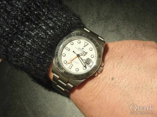 S様 この度はクォークラボ中野店をご利用いただきありがとうございます。今回お求め頂きましたモデル、エクスプローラーⅡ、Ref.216570(ホワイト文字盤)は、今注目のモデルで、昔から人気の高いモデルでございます。またダイヤルのカラーも非常に爽やかでS様の腕元にすごくお似合いでした。そして今回はお子様の生まれ年の年式の個体という事もあり、S様にとって特別な1本になると思います。本当にこのようなタイミングでS様にご案内できて、私も嬉しく思います。ありがとうございました。これからのロレックスライフをお楽しみください。また全支店でブレス洗浄サービスもありますので、お近くに来られた際には是非、遊びに来てください。今後とも末永いお付き合いの程、よろしくお願い致します。