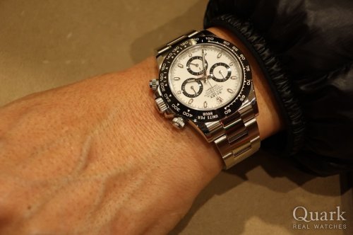 この度は当店にてデイトナを購入頂きまして誠にありがとうございました。黒文字盤が多い男性モデルにおいて、デイトナの白文字盤の人気はとても高く、ロレックスファンの憧れの時計であることは間違いございません。末永くお使い頂ければ幸いです。今後とも時計を通じた末永いお付き合いの程、宜しくお願い申し上げます。