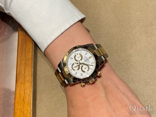 K様 この度は数ある時計店の中からクォーク上野本店をご利用いただき誠にありがとうございます。DAYTONA Ref.116503のご購入おめでとうございます!こちらの商品は価格が高騰しているモデルの一つの為、タイミング良くご紹介出来た事、私も嬉しく思います。高級感のあるイエローゴールドに加え、落ち着いた印象の白文字盤の相性が良いですね!ブレスレットの洗浄及び調整も無料で行っておりますので、お近くにお越しの際は遊びにいらしてくださいませ。お使いいただく上で何かご不明な点等ございましたら、また林までご相談ください。今後とも末永いお付き合いの程よろしくお願いいたします。