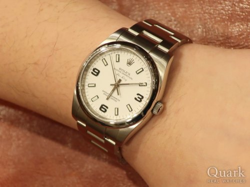 M様、この度はクォーク仙台店をご利用頂きまして誠にありがとうございます。今回M様にお選び頂きました『AIR-KING Ref.114200』は34mm径ケースながら、丸みを帯びたベゼルに迫力があり、フィット感が非常に高い腕馴染みの良い1本です。デイト表示がない極めてシンプルなデザインで、ホワイト369ダイヤルのカラーリングが一層引き立ちます。王冠マークのレイアウトや針など、細かな違いなどはございますが、おっしゃる通り、EXPLORER Iの反転のようで愛らしいですね!また、2014年のマイナーチェンジにより「Air-King」ロゴが消え、ロレックス最古のペットネームモデルが一時生産終了を迎えますが、“ロゴあり”にこだわってお探しいただいた事やお伺いしたお話など、お時計がお好きな様子がビシビシと伝わってまいりました!是非ご愛用いただき、お楽しみいただけますと幸いです。ブレスレットの洗浄や調整も無料で承っておりますので、お時間がございます際には、遊びに来ていただき、コレクションのお話などお聞かせくださいませ。今後もご用命いただきました際にはしっかりとサポート致しますので、末永いお付き合いのほど、よろしくお願い申し上げます。