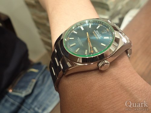 O様 平素よりクォーク横浜店をご愛顧頂き、誠にありがとうございます。以前所有されていたエクスプローラーIとはデザインも大きく変わり、気分も一新されたのではないでしょうか?ロレックス唯一のグリーンガラス、初代モデルを彷彿とさせる秒針等、ミルガウスでしか味わえない個性を楽しんで頂ければ幸いでございます。また近くまでお越しの際はブレスレットのクリーニングも兼ね、お気軽にお立ち寄り下さいませ。今後とも末永いお付き合いの程、宜しくお願い致します。
