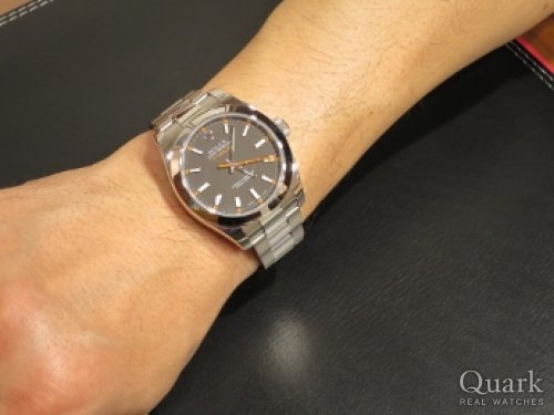 N様 この度はクォーク梅田店をご利用いただきまして、誠にありがとうございました。いろいろ見て回られて、グリーンガラスのミルガウスやエクスプローラーIIと迷われていましたが、ベーシックな黒はやはり落ち着いた雰囲気があり、服装を選ぶことなく合わせていただけますので、これから末永くお使いいただけると思います。お使いいただく中で、ご不明な点などがございましたら、お気軽にご相談下さい。また、店頭にてブレスレットの洗浄なども承っておりますので、梅田へ起こしの際はぜひお店にもお立ち寄り下さい。N様のまたのご来店を心よりお待ちしております。 クォーク梅田店 松原
