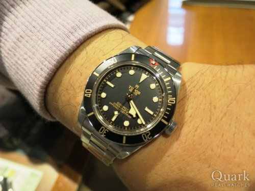 N様 いつもクォーク上野本店をご利用頂き誠にありがとうございます。今回はTUDOR Ref.79030N ブラックベイ・フィフティーエイトのご購入のお手伝いが出来た事、大変嬉しく思います。39mmのスモールケースにTUDOR社製のクロノメータームーブメントCal.MT5402を搭載したブラックベイ・フィフティーエイトになります。41mmのブラック・ベイと比較するとケースの厚みがシャープになりサファイヤクリスタル風防はうっすらドーム型になっている為、現行モデルでありながらアンティーク感を楽しめる1本です。発売されてから入荷数は非常に少なく、今回はタイミング良くN様にご紹介出来て良かったです。