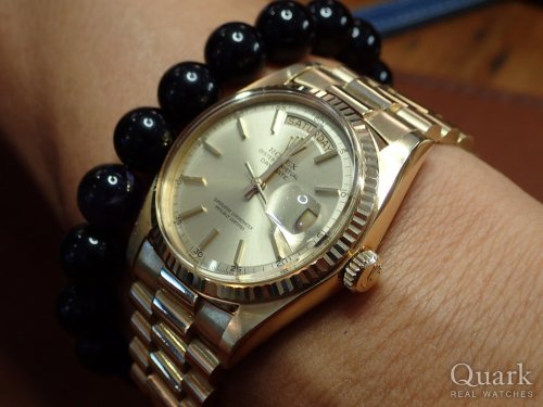 H様 平素はクォークをご愛顧賜り誠に感謝申し上げます。早速ですがこの度もありがとうございました。年々Ref.1803 DAY-DATEは少なくなっておりますね。良い個体をご紹介出来て嬉しく存じます。現行モデルにはない立体感のあるダイアルはご自宅の照明環境でもしっかり映え、風防が無いかのように美しく見えるかと思います。是非楽しんでいただけたら幸いです。今後とも末永いお付き合いの程、宜しくお願い申し上げます。クォーク佐藤