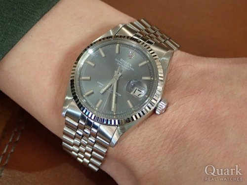 H様 この度はクォークをご利用頂き誠に感謝申し上げます。良いタイミングでH様の生まれ年であるRef.1601 デイトジャストをお探しすることが出来て嬉しく思います。特にダイアルは70年代らしいデザインでとても良くお似合いでございました。ムーブメントも素晴らしく日常的にお使い頂けるうえに現行品には無い優しい表情をご自宅で眺めるのも愉しいかと存じます。メンテナンスなどはいつでもご相談下さいませ。これからも末永くお付き合いさせて頂けてら幸いです。よろしくお願いします。クォーク 佐藤