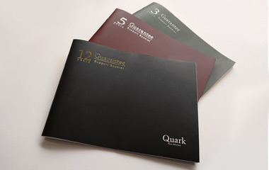サポートブックイメージ クォークの保証書は、単なる保証書だけでなく、サポートブックとしてもお使い頂けます。