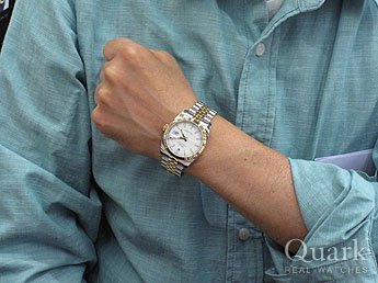 ホワイト文字盤が好きで、5列ブレスだったらコンビモデルと決めて購入しました。