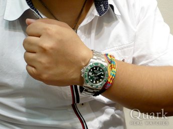 S様 この度はクォーク仙台店をご利用くださいまして、誠にありがとうございます。深いグリーンが特徴的なサブマリーナーは、見ているだけでも楽しいモデルですね! 記念のお時計ご購入のお手伝いができたこと、大変光栄でございます。夏はもちろん、様々なシーンで活躍してくれる、とても素敵なデザインです! 今後もしっかりと対応させて頂きますので、末長いお付き合いの程、どうぞ宜しくお願い致します。 クォーク仙台店 古賀・麻生