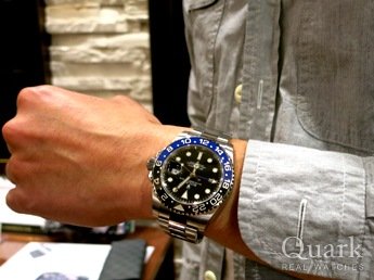 初めて雑誌のGMTマスターⅡの青黒モデルを見て、すごく気に入りましたが、長時間に渡り、何度も実物を前に佐野さんとお話をさせていただき、購入する決意をする事が出来ました。青黒のツートンベゼルがすごくかっこいいです。