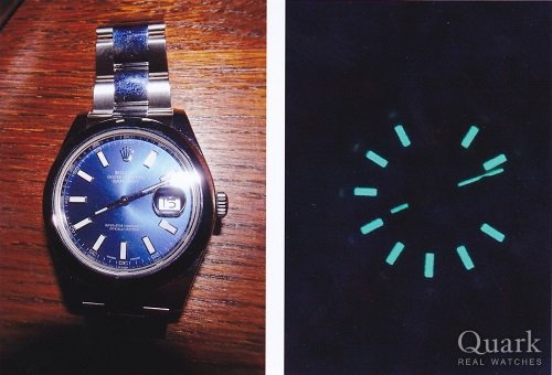 F様 この度もクォーク梅田店をご利用並びにご来店頂きまして、誠に有難う御座います。デイトジャストIIのブルーは非常に綺麗でF様に非常にお似合いで御座いました。この度は非常に高年式で保護のシールが付いている程の美品で御座いましたので私も自信を持ってお勧めさせて頂きました。気に入って頂ければ幸いで御座います。また何か気になる事があればいつでもご相談下さいませ。今回も絶妙でF様が拘って撮って頂きましたお写真を掲載させて頂きます。本当に綺麗で夜光塗料などはなかなか難しい撮影だったと思います!また拘りのお写真見せて下さいね!お仕事も頑張ってください!応援しております!!是非、前を通られる際はお立ち寄りくださいませ。今後共、クォーク梅田店を宜しくお願い致します。 クォーク梅田店 辻
