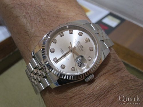 Y様 この度はクォ―ク上野本店をご利用頂き誠にありがとうございます。今回はDATE-JUST Ref.116234Gシルバーダイヤルのご購入のお手伝いが出来た事、大変嬉しく思います。時代を超越した36mmケースに18KWGベゼルを装備したロレックスの定番モデルとなります。ダイヤルには10Pの大粒なダイヤを施し、落ち着きのある高級感を感じさせてくれる1本です。ご使用頂きしっかりとサポートさせて頂きますので今後、お時計の事で何かございましたらお気軽にご相談下さいませ。宜しくお願いいたします。