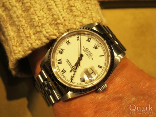 S様 この度はクォ―ク上野本店をご利用頂き誠にありがとうございます。今回はお孫様の20歳の記念にプレゼントと言う事でとても喜ばれる時計だと思います。DATE-JUST Ref.16234はベゼルに18KWGを使用し、上品な輝きを放ちます。また視認性が良いホワイトローマが若いから年輩の方まで多くの方にご愛用されているロレックスです。ご使用頂きしっかりとサポートさせて頂きますので今後、お時計の事で何かございましたらお気軽にご相談下さいませ。宜しくお願いいたします。