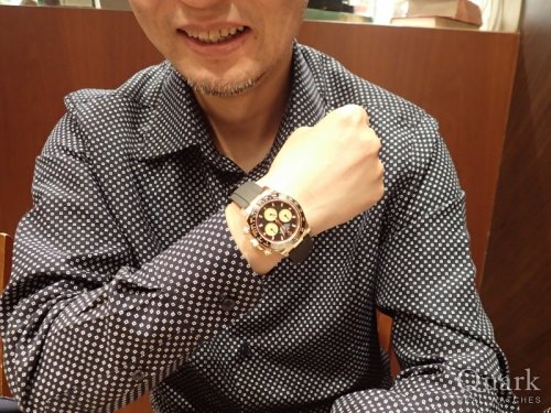 T様 日頃より、私共クォークをご利用頂き、誠に有難う御座います。T様の黒金目への想いは伺っていたつもりでしたが、15年越しだったんですね。待望のデイトナと言えるかと思いますが、腕につけて頂いた時、腕元から目が離せなくなる程、とっても格好良く、T様にとってもお似合いでした。これまでの想いの分、喜びも格別ではないでしょうか。スポーツモデル最高峰と言われるデイトナの中でも、金無垢モデルはハイランクに位置しておりますが、今回のRef.116518LN・黒金目ダイヤルは、2017年発表の新しいモデルで御座います。日常、なかなか見かける事の無いモデルで御座いますので、是非是非、周りにアピールしてくださいね。現在ご愛用のロレックスにも、それぞれ想いがあり愛着があるかと思いますが、この度ご購入頂きましたデイトナにもステキな想い出が沢山でき、ご自慢の1本となりましたら幸いです。末長くご愛用頂けますよう、しっかりサポートさせて頂きますので、気になる事等が御座いましたら、お気軽にご連絡ください。また、次は10本目になるんですね。スゴイです!まさに記念と言うべき10本目となりますので、是非とも私共でお手伝いさせて頂きたく存じます。まずは、今回のデイトナをご堪能頂き、ゆっくりとモデル選びからお手伝いさせてください。今後とも、末長いお付き合いの程、どうぞ、宜しくお願い致します。 クォーク仙台店 麻生
