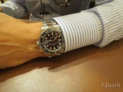 F様、この度はクォーク梅田店をご利用頂きまして誠に有難うございます。数ある時計店より当店をお選び頂き大変光栄でございます。今回お選び頂きましたGMTマスターII Ref.116710LNはセラミックベゼルと鏡面仕上げのブレスレットが高級感を醸し出していますね。オンオフ問わず幅広くご使用頂けるモデルとなっております。GMT機能は海外でご活躍されていらっしゃるF様にはうってつけだと思います。また日本に帰られる際は是非お立ち寄りくださいませ。
