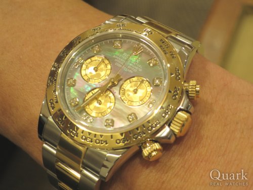 S様 この度はクォーク名古屋店をご利用頂きまして誠に有難う御座いました。そして、オーナーズボイスへのご協力本当に有難う御座います。御購入されましたRef.116503NG(ブラックシェル)は、世界に一つしかないロマンあふれるダイヤルとモデルとしての人気を博している御時計で御座います。こちらのシェルダイヤルは、グリーンの色目が多く出ておりとても幻想的で非常に美しい個体になります。インデックスに使用されている8Pのダイヤモンドとの相性が非常にラグジュアリーな雰囲気を様々なシーンでお楽しみ頂けたらなと思います。是非今後共S様をサポートさせて頂きます。ブレス洗浄や磁器抜きのサービスもさせて頂きますので、是非お近くにお越しの際は、遊びにいらして下さいませ。これからも末永い、御付き合いの程、宜しくお願い致します。