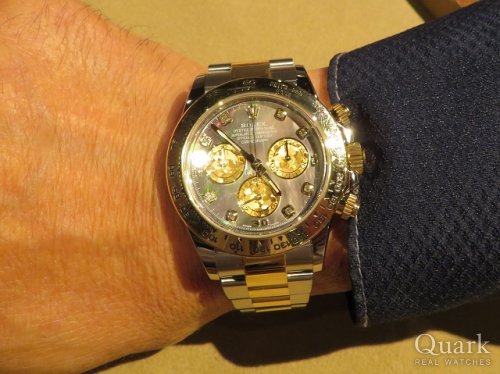 T様 この度は数ある時計店からクォーク上野本店をご利用いただき誠にありがとうございます。眺める角度によって様々な表情を変えるシェル文字盤は流通量も少なく希少価値の高いお時計となります。18Kイエローゴールドと8Pダイヤの入ったブラックシェル文字盤がT様の腕元を鮮やかに演出してくれる最高の一本となりますので是非、末永くご使用いただければと思います。ブレスレットの洗浄及び調整も無料で行っておりますので、お近くにお越しの際は遊びにいらしてくださいませ。お使いいただく上で何かご不明な点等ございましたら、また林までご相談ください。今後とも末永いお付き合いの程よろしくお願いいたします。